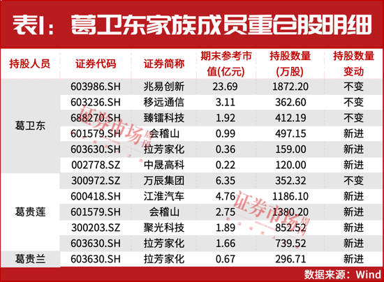 此外,笔者还注意到,与葛卫东有一定关联关系的葛贵莲和葛贵兰(公开资料显示,其同为葛卫东旗下混沌投资的持股股东)。同期同样现身在多家上市公司的前十大流通股股东名单,合计达5家(见表1)。
